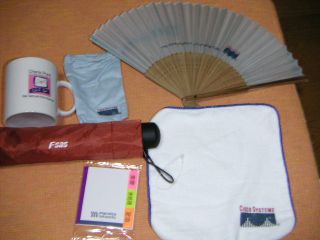 のブースより: 扇子・巾着袋・手ぬぐい3点セット。