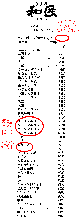 - ちなみに、居酒屋のレシートによると、350ml の烏龍茶ポットを16個注文していた